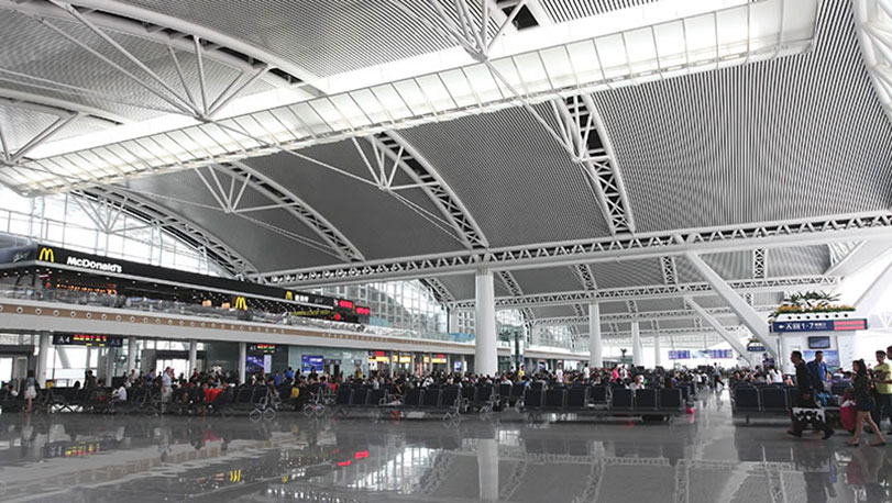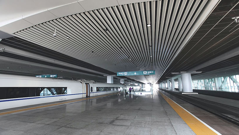 廣州站位于廣州市番禺區(qū),2009年建設(shè),寶鋼熱鍍鋅彩涂做屋面板,顏色為深棕褐,涂層品種PE聚酯,鍍鋅量180克/平方米,牌號為TDC51D。