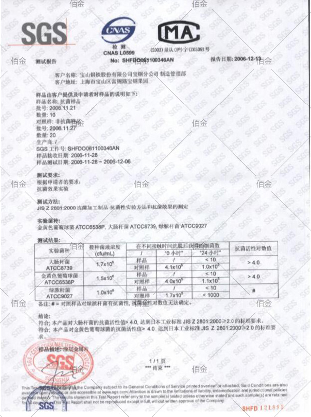 寶鋼抗菌彩涂產品