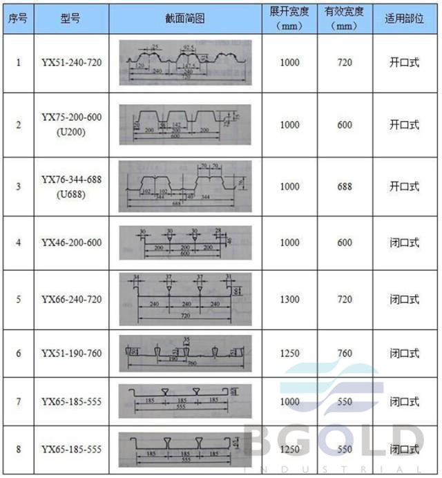 2、常見樓板用壓型鋼板板型(樓承板)