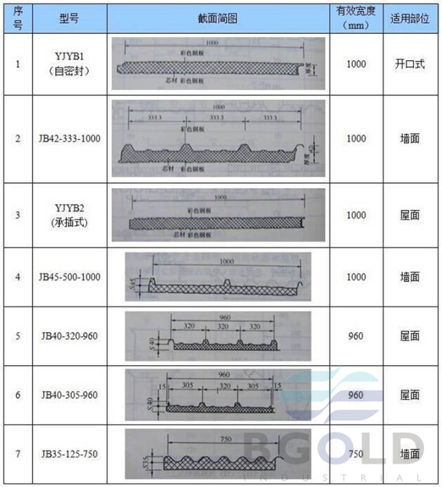 3、常用保溫夾芯板板型