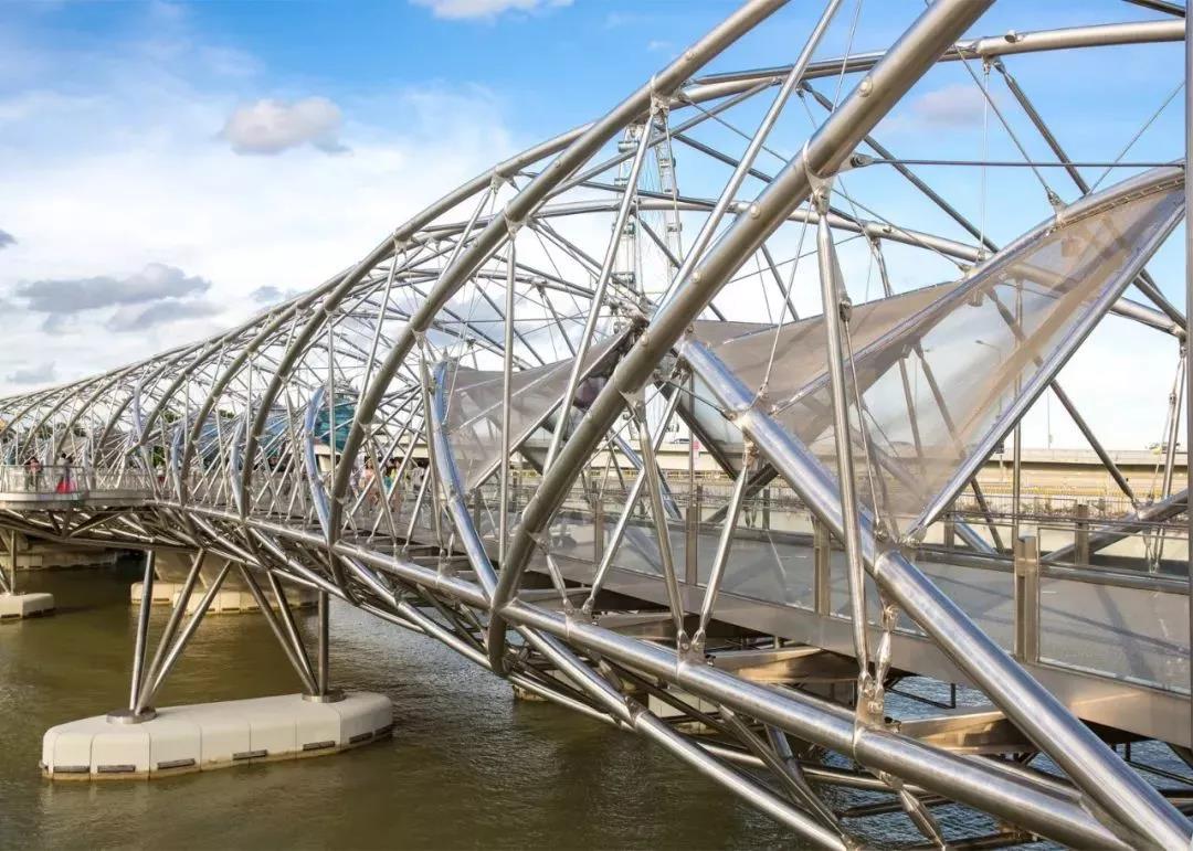 雙螺旋樓梯主要支撐在外圈的索網(wǎng)上,所以螺旋外側(cè)做強(qiáng),為較粗圓鋼管,同時(shí)連續(xù)的雙螺旋樓梯也提高了索網(wǎng)的穩(wěn)定性。