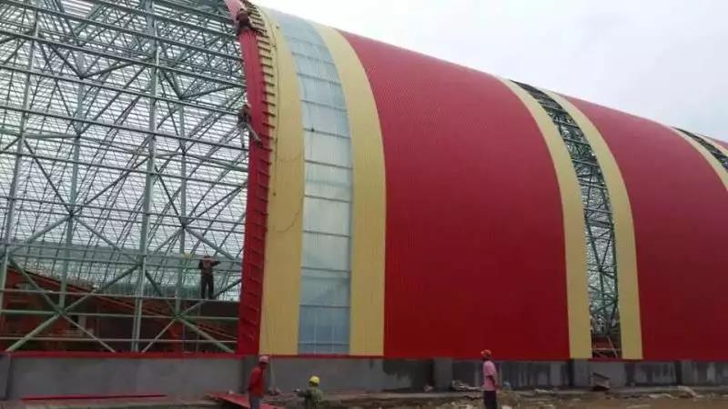 2013年新冶鋼實施煉鋼廠二期中棒線項目,指定使用寶鋼黃石彩涂產品,根據寶鋼多年在冶煉行業的產品應用經驗,經過選材推薦,產品規格選用0.8*1000 高性能海藍/0.6*1000高性能白灰,基板鍍鋁鋅150克,工程總量600多噸,2016年6月經過工程實地回訪,涂層保持完好,顏色仍舊亮麗,后期陸續承建新冶鋼技改工程。