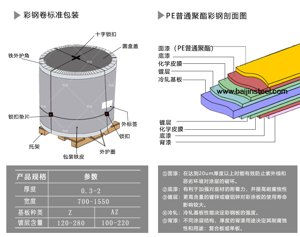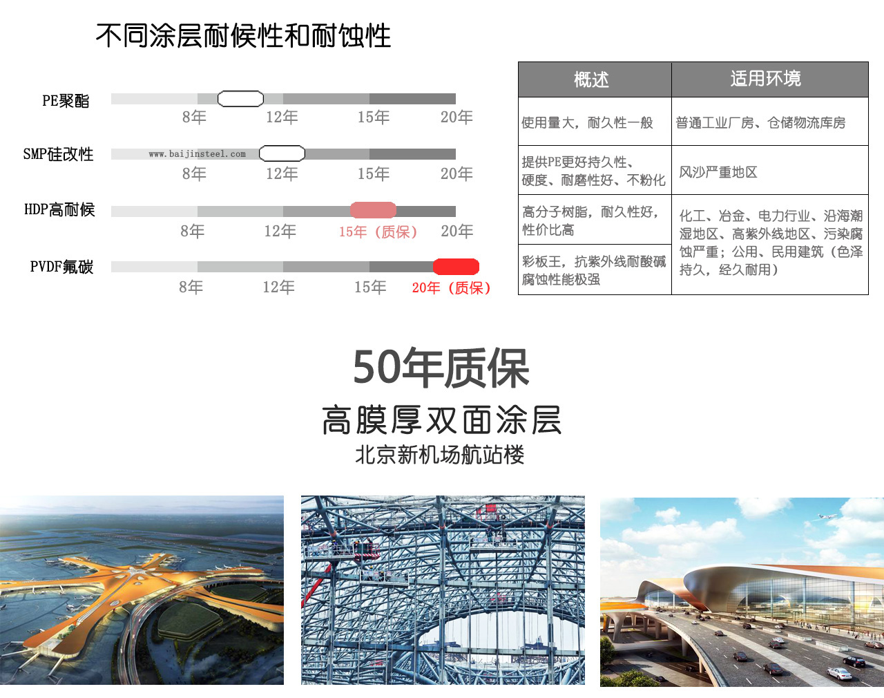 注:本網(wǎng)站數(shù)據(jù)部分來(lái)源寶鋼彩涂板企業(yè)標(biāo)準(zhǔn)BQB/440 -2014 ,寶鋼彩涂板產(chǎn)品手冊(cè),及工程案例。