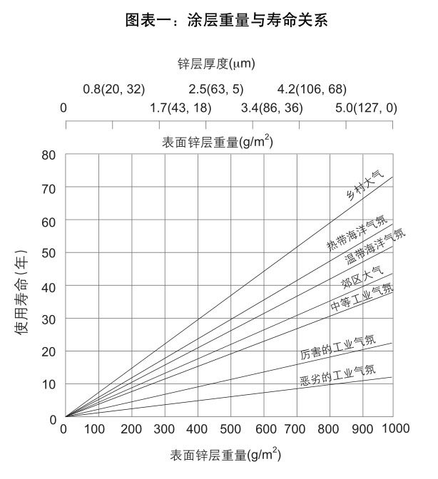 鍍層形式 純鋅等厚鍍層40/40-225/225 g/m2